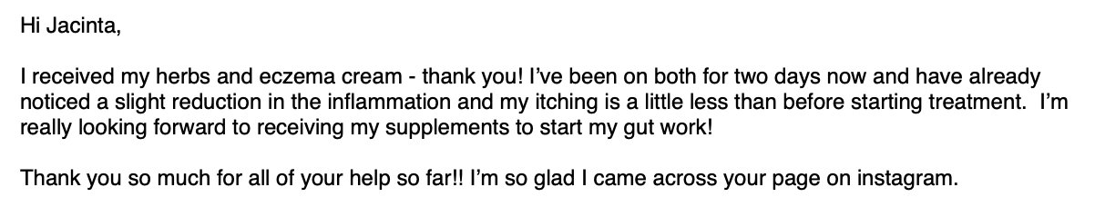 Sign up to our mailing list and receive a free 9 page guide for eczema health. The Eczema Health Handbook was created by Naturopath Jacinta Mullins (BHSc).